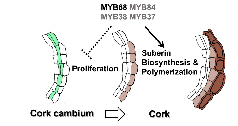 Unlocking the secrets of cork: We identify MYB68 subclade transcription factors as key regulators of suberin biosynthesis and cork cambium activity — opening new doors for bioengineering better plant barriers.