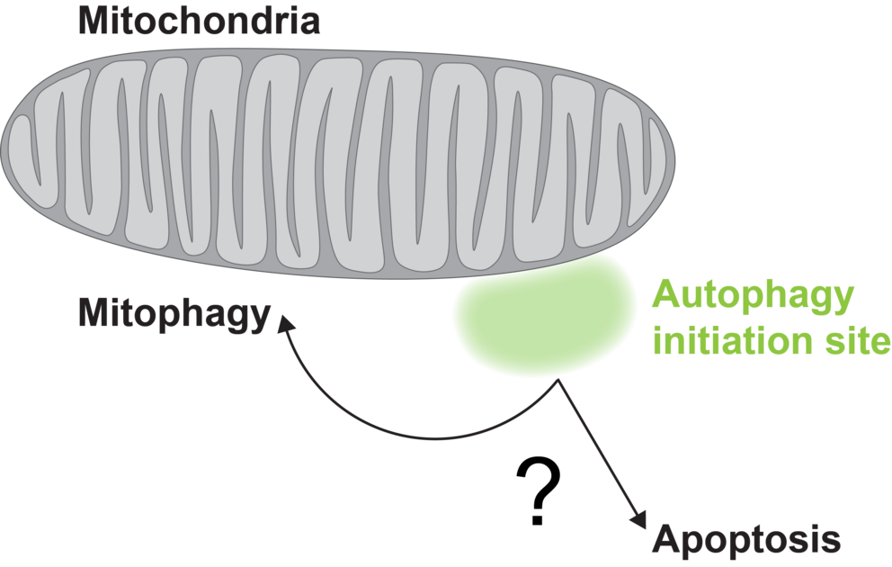 Mitophagy is responsible for degrading and recycling defective parts of mitochondria. Early on, several “manager” factors accumulate at the autophagy initation site to start the recycling process. They help deciding whether mitochondria can be recycled through mitophagy or should be safely removed through apoptosis, maintaining the cell’s balance between renewal and controlled shutdown.